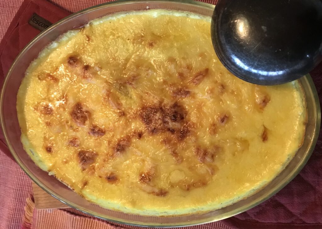 Nun wird der Plokkfisch noch ca. 10 Minuten gebacken bei ca. 180°C bzw. so lange, bis der Käse leicht braun gebacken ist.